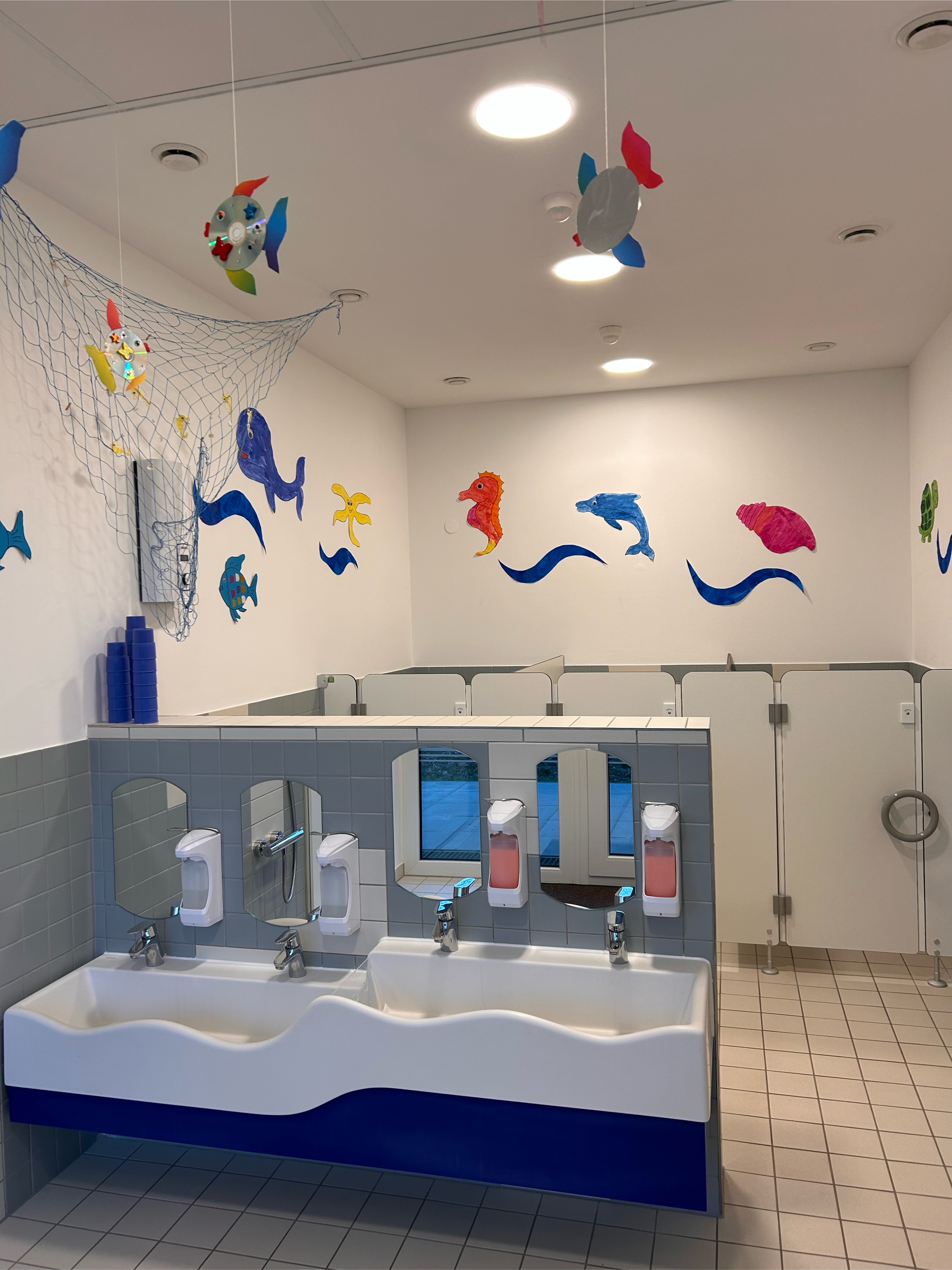 -2 Wasch-/ Sanitärräume, einer mit großem Wickelbereich